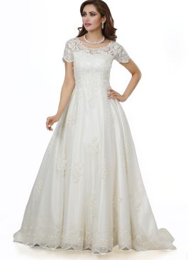 This Christian Heritage cotton-style lace dress is a easy-to-wear simple round neck dress. The lace placement on the bodice is given to create a playful movement in the fabric.