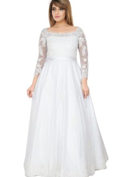 Christian Heritage’s Square Broad neck Bridal A-Line Gown, with border edges and floral patch.