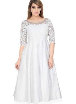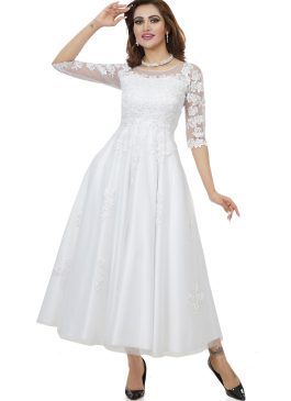 Perfecting the Wedding with Christian Heritage’s Square Broad neck Bridal A-Line Gown, with Twirled edges and 3/4th sleeves.