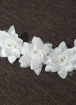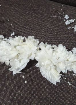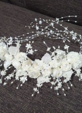 This white flower wreath made from satin cloth and pearls with surely showcase your beauty on your grand day.