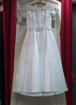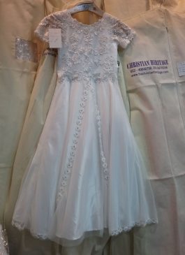 Beautiful looking white communion dress embellished with bead work for your girl on this special occasion from Christian Heritage.