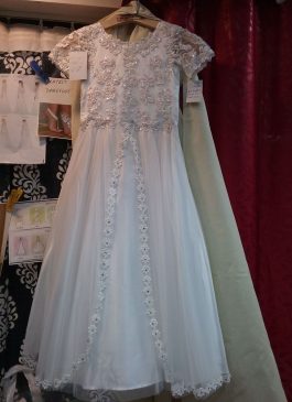 WHITE HOLY COMMUNION Gown laces satin and tulle, veil and wreath for your girl from Christian Heritage.