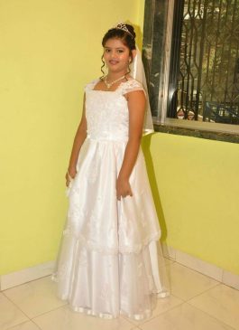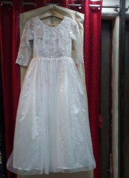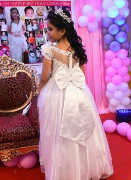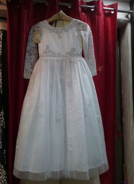 WHITE HOLY COMMUNION Gown to make your girl look all extravagant & traditional on this special occasion with heavy laces satin and tulle.